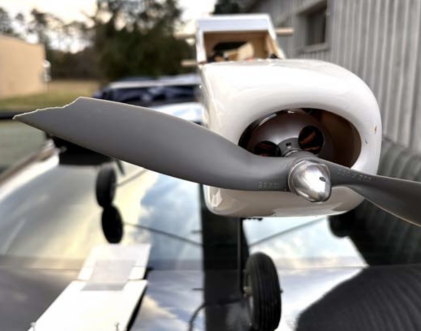 After four years on display in the Chapter House, the Build & Fly airplane has been brought back to life. The project started with some Young Eagles just before COVID in 2019 and was completed at the end of 2020 by Mike Walpole and Bob Prange. Videos of the building progress can be seen on YouTube at “skigolfmike”. The plane survived its first test flight with issues and adjustments were made by Mike. However, he moved away and we never got to show any of the contributing Eagles their project in flight. I hadn’t been in the RC flying hobby in over ten years and didn’t feel comfortable taking over as chief pilot. That changed this year when a friend gave me a Turbo Timber model for my birthday in July. With a few hours of fresh experience under my belt, I brought down the Sig Kadet PT-40 hanging from the ceiling, dusted it off and brought it back to airworthy condition. Last Sunday I achieved 15 minutes of flying, 10 landings and one broken prop.